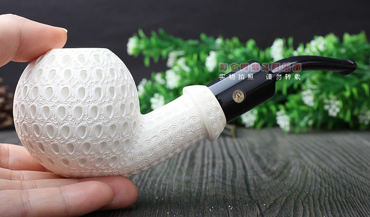 海泡石(meerschaum) 德语“海泡沫”的意思,传说是由海浪头的白沫凝成.海泡石是一种珍贵的多孔矿物,主要成分为含水硅酸镁(magnesium silica),是自然界中最具渗透性的物质之一,由数百万年前,海中微生物的躯壳沉积洋底,石化而成。海泡石是一种极轻质,吸收性极佳的特殊天然材料。最优质、最适合用于烟斗制作的海泡石原料,产自土耳其伊斯坦布尔东南约200英里,名为eskisehir的小村庄附近。工人深入地底约400英尺采挖,过程艰辛。经历多重 筛选、去杂工序,并由熟练工匠精心雕琢,方成就做工精致细巧的精品烟斗和烟嘴。