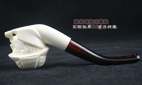 海泡石(meerschaum) 德语“海泡沫”的意思,传说是由海浪头的白沫凝成.海泡石是一种珍贵的多孔矿物,主要成分为含水硅酸镁(magnesium silica),是自然界中最具渗透性的物质之一,由数百万年前,海中微生物的躯壳沉积洋底,石化而成。海泡石是一种极轻质,吸收性极佳的特殊天然材料。最优质、最适合用于烟斗制作的海泡石原料,产自土耳其伊斯坦布尔东南约200英里,名为eskisehir的小村庄附近。工人深入地底约400英尺采挖,过程艰辛。经历多重 筛选、去杂工序,并由熟练工匠精心雕琢,方成就做工精致细巧的精品烟斗和烟嘴。