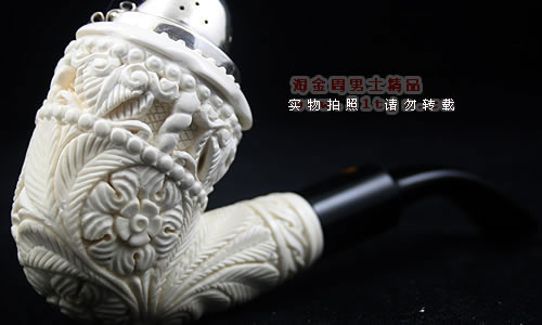 海泡石(meerschaum) 德语“海泡沫”的意思,传说是由海浪头的白沫凝成.海泡石是一种珍贵的多孔矿物,主要成分为含水硅酸镁(magnesium silica),是自然界中最具渗透性的物质之一,由数百万年前,海中微生物的躯壳沉积洋底,石化而成。海泡石是一种极轻质,吸收性极佳的特殊天然材料。最优质、最适合用于烟斗制作的海泡石原料,产自土耳其伊斯坦布尔东南约200英里,名为eskisehir的小村庄附近。工人深入地底约400英尺采挖,过程艰辛。经历多重 筛选、去杂工序,并由熟练工匠精心雕琢,方成就做工精致细巧的精品烟斗和烟嘴。