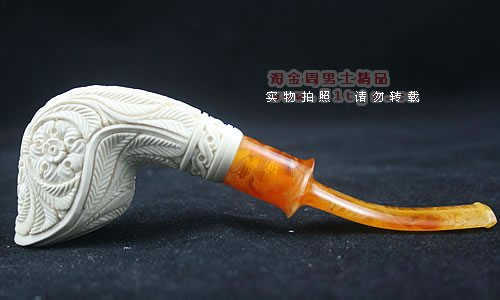 海泡石(meerschaum) 德语“海泡沫”的意思,传说是由海浪头的白沫凝成.海泡石是一种珍贵的多孔矿物,主要成分为含水硅酸镁(magnesium silica),是自然界中最具渗透性的物质之一,由数百万年前,海中微生物的躯壳沉积洋底,石化而成。海泡石是一种极轻质,吸收性极佳的特殊天然材料。最优质、最适合用于烟斗制作的海泡石原料,产自土耳其伊斯坦布尔东南约200英里,名为eskisehir的小村庄附近。工人深入地底约400英尺采挖,过程艰辛。经历多重 筛选、去杂工序,并由熟练工匠精心雕琢,方成就做工精致细巧的精品烟斗和烟嘴。