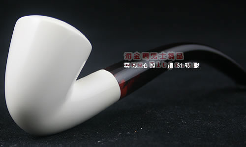 海泡石(meerschaum) 德语“海泡沫”的意思,传说是由海浪头的白沫凝成.海泡石是一种珍贵的多孔矿物,主要成分为含水硅酸镁(magnesium silica),是自然界中最具渗透性的物质之一,由数百万年前,海中微生物的躯壳沉积洋底,石化而成。海泡石是一种极轻质,吸收性极佳的特殊天然材料。最优质、最适合用于烟斗制作的海泡石原料,产自土耳其伊斯坦布尔东南约200英里,名为eskisehir的小村庄附近。工人深入地底约400英尺采挖,过程艰辛。经历多重 筛选、去杂工序,并由熟练工匠精心雕琢,方成就做工精致细巧的精品烟斗和烟嘴。