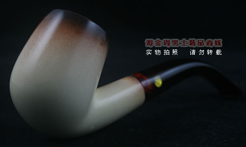 海泡石(meerschaum) 德语“海泡沫”的意思,传说是由海浪头的白沫凝成.海泡石是一种珍贵的多孔矿物,主要成分为含水硅酸镁(magnesium silica),是自然界中最具渗透性的物质之一,由数百万年前,海中微生物的躯壳沉积洋底,石化而成。海泡石是一种极轻质,吸收性极佳的特殊天然材料。最优质、最适合用于烟斗制作的海泡石原料,产自土耳其伊斯坦布尔东南约200英里,名为eskisehir的小村庄附近。工人深入地底约400英尺采挖,过程艰辛。经历多重 筛选、去杂工序,并由熟练工匠精心雕琢,方成就做工精致细巧的精品烟斗和烟嘴。