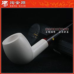 海泡石(meerschaum) 德语“海泡沫”的意思,传说是由海浪头的白沫凝成.海泡石是一种珍贵的多孔矿物,主要成分为含水硅酸镁(magnesium silica),是自然界中最具渗透性的物质之一,由数百万年前,海中微生物的躯壳沉积洋底,石化而成。海泡石是一种极轻质,吸收性极佳的特殊天然材料。最优质、最适合用于烟斗制作的海泡石原料,产自土耳其伊斯坦布尔东南约200英里,名为eskisehir的小村庄附近。工人深入地底约400英尺采挖,过程艰辛。经历多重 筛选、去杂工序,并由熟练工匠精心雕琢,方成就做工精致细巧的精品烟斗和烟嘴。