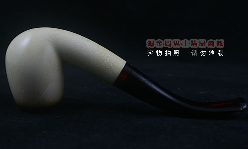海泡石(meerschaum) 德语“海泡沫”的意思,传说是由海浪头的白沫凝成.海泡石是一种珍贵的多孔矿物,主要成分为含水硅酸镁(magnesium silica),是自然界中最具渗透性的物质之一,由数百万年前,海中微生物的躯壳沉积洋底,石化而成。海泡石是一种极轻质,吸收性极佳的特殊天然材料。最优质、最适合用于烟斗制作的海泡石原料,产自土耳其伊斯坦布尔东南约200英里,名为eskisehir的小村庄附近。工人深入地底约400英尺采挖,过程艰辛。经历多重 筛选、去杂工序,并由熟练工匠精心雕琢,方成就做工精致细巧的精品烟斗和烟嘴。