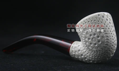 海泡石(meerschaum) 德语“海泡沫”的意思,传说是由海浪头的白沫凝成.海泡石是一种珍贵的多孔矿物,主要成分为含水硅酸镁(magnesium silica),是自然界中最具渗透性的物质之一,由数百万年前,海中微生物的躯壳沉积洋底,石化而成。海泡石是一种极轻质,吸收性极佳的特殊天然材料。最优质、最适合用于烟斗制作的海泡石原料,产自土耳其伊斯坦布尔东南约200英里,名为eskisehir的小村庄附近。工人深入地底约400英尺采挖,过程艰辛。经历多重 筛选、去杂工序,并由熟练工匠精心雕琢,方成就做工精致细巧的精品烟斗和烟嘴。