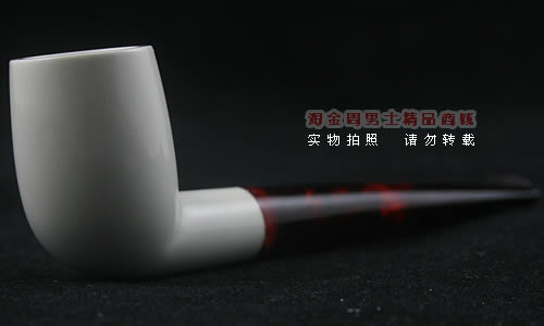 海泡石(meerschaum) 德语“海泡沫”的意思,传说是由海浪头的白沫凝成.海泡石是一种珍贵的多孔矿物,主要成分为含水硅酸镁(magnesium silica),是自然界中最具渗透性的物质之一,由数百万年前,海中微生物的躯壳沉积洋底,石化而成。海泡石是一种极轻质,吸收性极佳的特殊天然材料。最优质、最适合用于烟斗制作的海泡石原料,产自土耳其伊斯坦布尔东南约200英里,名为eskisehir的小村庄附近。工人深入地底约400英尺采挖,过程艰辛。经历多重 筛选、去杂工序,并由熟练工匠精心雕琢,方成就做工精致细巧的精品烟斗和烟嘴。