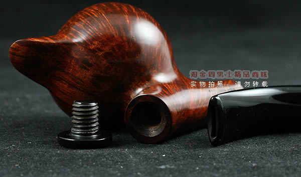 L’Anatra 烟斗的特色是丙烯酸材质的烟嘴,根据 Palazzi 介绍,这种材质能够更长久的保持亮度。烟嘴是 L’Anatra 烟斗唯一不完全靠 Palazzi 和 Pascucci 手工制成的。他们从工厂里预定烟嘴,事先规定好尺寸和外形。等用的时候再进一步加工,好让它们可以和烟斗完美的组合起来。 Palazzi 说:“我们只是烟斗工匠,而不是商人。”