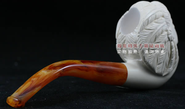 海泡石(meerschaum) 德语“海泡沫”的意思,传说是由海浪头的白沫凝成.海泡石是一种珍贵的多孔矿物,主要成分为含水硅酸镁(magnesium silica),是自然界中最具渗透性的物质之一,由数百万年前,海中微生物的躯壳沉积洋底,石化而成。海泡石是一种极轻质,吸收性极佳的特殊天然材料。最优质、最适合用于烟斗制作的海泡石原料,产自土耳其伊斯坦布尔东南约200英里,名为eskisehir的小村庄附近。工人深入地底约400英尺采挖,过程艰辛。经历多重 筛选、去杂工序,并由熟练工匠精心雕琢,方成就做工精致细巧的精品烟斗和烟嘴。