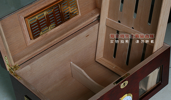 【物品描述】花梨木高光雪茄盒带三面玻璃 ,可装100支左右,保湿棉采用磁铁吸顶设计,注水非常方便