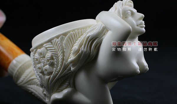 海泡石(meerschaum) 德语“海泡沫”的意思,传说是由海浪头的白沫凝成.海泡石是一种珍贵的多孔矿物,主要成分为含水硅酸镁(magnesium silica),是自然界中最具渗透性的物质之一,由数百万年前,海中微生物的躯壳沉积洋底,石化而成。海泡石是一种极轻质,吸收性极佳的特殊天然材料。最优质、最适合用于烟斗制作的海泡石原料,产自土耳其伊斯坦布尔东南约200英里,名为eskisehir的小村庄附近。工人深入地底约400英尺采挖,过程艰辛。经历多重 筛选、去杂工序,并由熟练工匠精心雕琢,方成就做工精致细巧的精品烟斗和烟嘴。