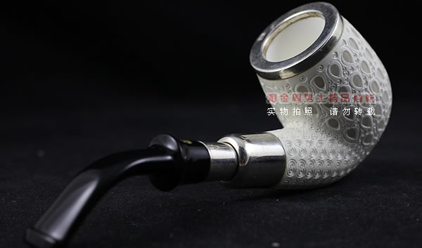 海泡石(meerschaum) 德语“海泡沫”的意思,传说是由海浪头的白沫凝成.海泡石是一种珍贵的多孔矿物,主要成分为含水硅酸镁(magnesium silica),是自然界中最具渗透性的物质之一,由数百万年前,海中微生物的躯壳沉积洋底,石化而成。海泡石是一种极轻质,吸收性极佳的特殊天然材料。最优质、最适合用于烟斗制作的海泡石原料,产自土耳其伊斯坦布尔东南约200英里,名为eskisehir的小村庄附近。工人深入地底约400英尺采挖,过程艰辛。经历多重 筛选、去杂工序,并由熟练工匠精心雕琢,方成就做工精致细巧的精品烟斗和烟嘴。