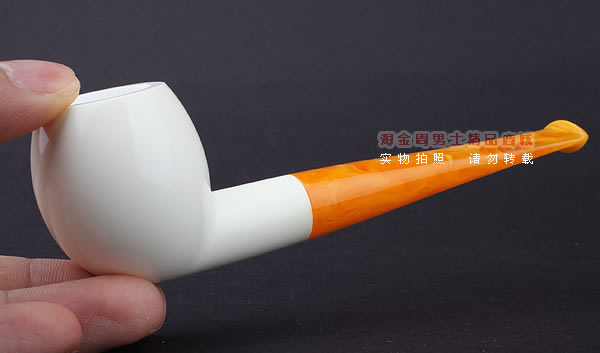 海泡石(meerschaum) 德语“海泡沫”的意思,传说是由海浪头的白沫凝成.海泡石是一种珍贵的多孔矿物,主要成分为含水硅酸镁(magnesium silica),是自然界中最具渗透性的物质之一,由数百万年前,海中微生物的躯壳沉积洋底,石化而成。海泡石是一种极轻质,吸收性极佳的特殊天然材料。最优质、最适合用于烟斗制作的海泡石原料,产自土耳其伊斯坦布尔东南约200英里,名为eskisehir的小村庄附近。工人深入地底约400英尺采挖,过程艰辛。经历多重 筛选、去杂工序,并由熟练工匠精心雕琢,方成就做工精致细巧的精品烟斗和烟嘴。