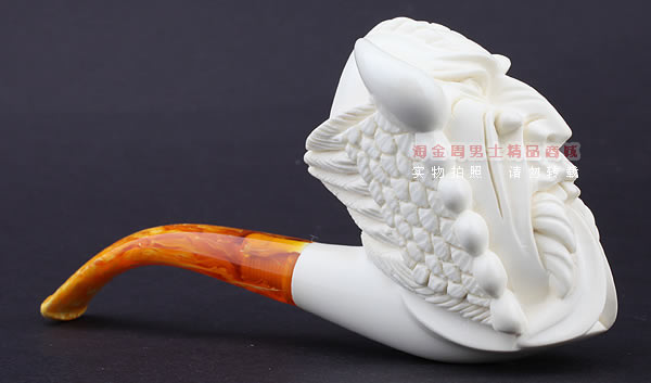海泡石(meerschaum) 德语“海泡沫”的意思,传说是由海浪头的白沫凝成.海泡石是一种珍贵的多孔矿物,主要成分为含水硅酸镁(magnesium silica),是自然界中最具渗透性的物质之一,由数百万年前,海中微生物的躯壳沉积洋底,石化而成。海泡石是一种极轻质,吸收性极佳的特殊天然材料。最优质、最适合用于烟斗制作的海泡石原料,产自土耳其伊斯坦布尔东南约200英里,名为eskisehir的小村庄附近。工人深入地底约400英尺采挖,过程艰辛。经历多重 筛选、去杂工序,并由熟练工匠精心雕琢,方成就做工精致细巧的精品烟斗和烟嘴。