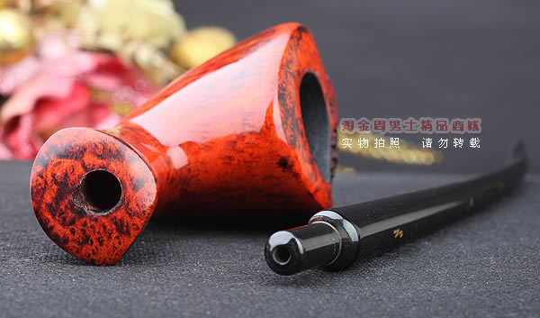 特点:采用黄金染色,将纹理完美的体现出来,表面上光蜡,即有观赏性,又不乏实用性,长嘴阅读斗,使用起来烟气更凉,值得收藏,仅此一款,所见即所得