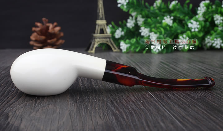 海泡石(meerschaum) 德语“海泡沫”的意思,传说是由海浪头的白沫凝成.海泡石是一种珍贵的多孔矿物,主要成分为含水硅酸镁(magnesium silica),是自然界中最具渗透性的物质之一,由数百万年前,海中微生物的躯壳沉积洋底,石化而成。海泡石是一种极轻质,吸收性极佳的特殊天然材料。最优质、最适合用于烟斗制作的海泡石原料,产自土耳其伊斯坦布尔东南约200英里,名为eskisehir的小村庄附近。工人深入地底约400英尺采挖,过程艰辛。经历多重 筛选、去杂工序,并由熟练工匠精心雕琢,方成就做工精致细巧的精品烟斗和烟嘴。
