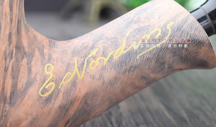 特点:原木未上漆,透气更佳,本系列烟斗表面做了染色处理,将纹理完美的体现出来,即有观赏性,又不乏实用性,斗柄上有Nording金字手工签名,值得收藏,仅此一款,所见即所得