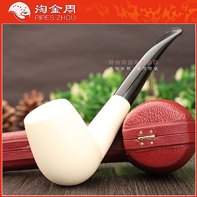 海泡石(meerschaum) 德语“海泡沫”的意思,传说是由海浪头的白沫凝成.海泡石是一种珍贵的多孔矿物,主要成分为含水硅酸镁(magnesium silica),是自然界中最具渗透性的物质之一,由数百万年前,海中微生物的躯壳沉积洋底,石化而成。海泡石是一种极轻质,吸收性极佳的特殊天然材料。最优质、最适合用于烟斗制作的海泡石原料,产自土耳其伊斯坦布尔东南约200英里,名为eskisehir的小村庄附近。工人深入地底约400英尺采挖,过程艰辛。经历多重 筛选、去杂工序,并由熟练工匠精心雕琢,方成就做工精致细巧的精品烟斗和烟嘴。