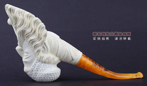 海泡石(meerschaum) 德语“海泡沫”的意思,传说是由海浪头的白沫凝成.海泡石是一种珍贵的多孔矿物,主要成分为含水硅酸镁(magnesium silica),是自然界中最具渗透性的物质之一,由数百万年前,海中微生物的躯壳沉积洋底,石化而成。海泡石是一种极轻质,吸收性极佳的特殊天然材料。最优质、最适合用于烟斗制作的海泡石原料,产自土耳其伊斯坦布尔东南约200英里,名为eskisehir的小村庄附近。工人深入地底约400英尺采挖,过程艰辛。经历多重 筛选、去杂工序,并由熟练工匠精心雕琢,方成就做工精致细巧的精品烟斗和烟嘴。